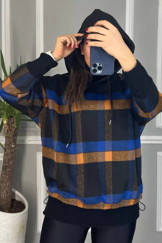 هودی پشمی کلاهدار ترکیبی با بافت